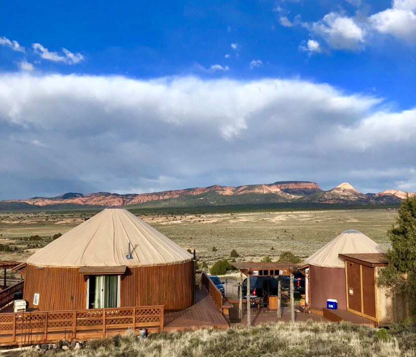 We arrived late in the day at our Southern Utah yurt, located in the Rockies at close to 8000 ft. It’s very early spring here. The yurt is essentially a tent covering a wooden frame. It’s snug and warm yet flaps a bit in the wind. Our host lives in a adjacent yurt. We have a hot plate, microwave, small frig, full bathroom and washer/ dryer.