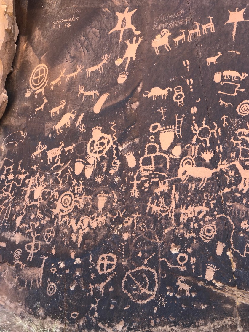We’ve visited several Petroglyph sites all over the Southwest but none compare to Newspaper Rock in Southern Utah. Experts argue the meaning and significance of this chiseled rock art, some insist it’s nothing more than ancient graffiti while the Native Americans insist it’s both spiritual and territorial markings of their ancestors.