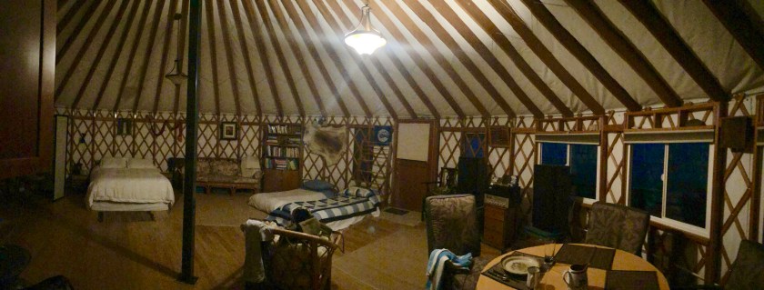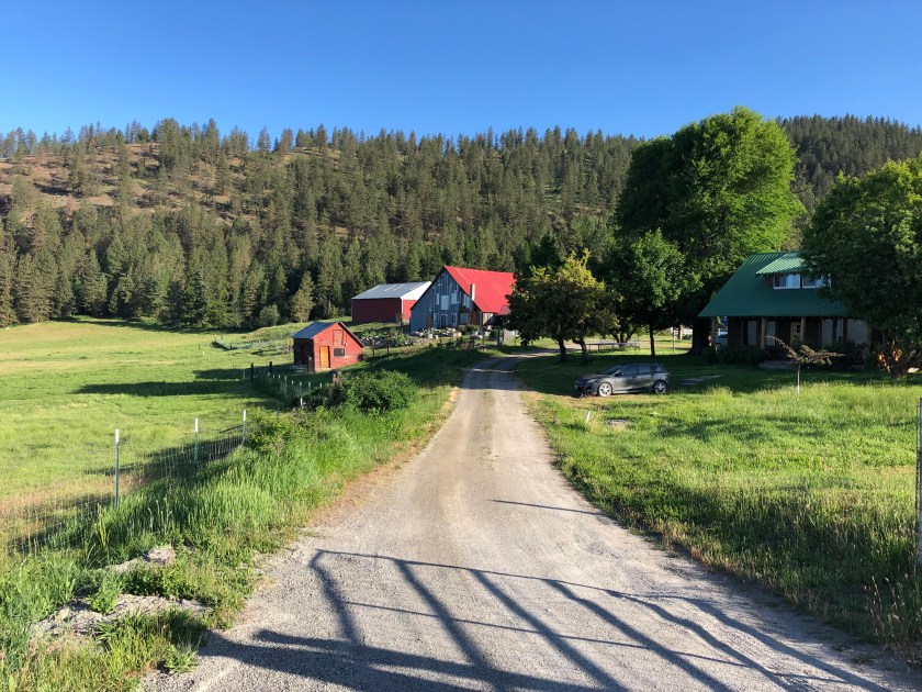 My final stop in the Lower 48, before heading north, was a sheep farm in North East Washington about 50 miles from British Columbia. I wandered off the main road and as had happened before in remote places, the Garmin GPS map went blank. I blindly drove around dirt roads looking for the farm, finally spotting it on a hillside, their Yurt stood out. My friendly host came out to greet me, handing me a bag of salad greens. Sally showed me my Yurt, it was huge and brand new. It was nestled amongst various farm buildings on a bucolic hillside with sweeping views. My host sheepishly asked where Karen was ( I had booked months earlier). I think her and her husband felt sorry for the lone traveler, I ended up being invited to a wonderful dinner out on their patio overlooking grazing sheep, it was a special evening I won’t forget. Once again, I have found great pleasure in meeting new people in my Airbnb travels. As before, these farmers told tales of loosing livestock to Cougars and now wolves, they are constantly battling nature.