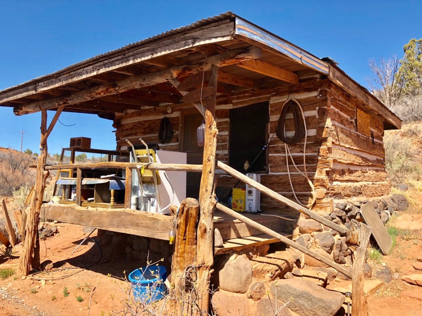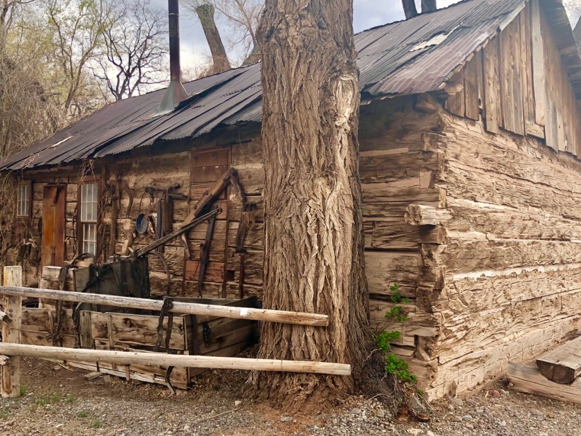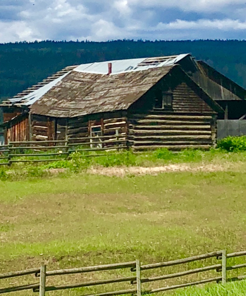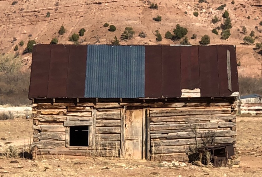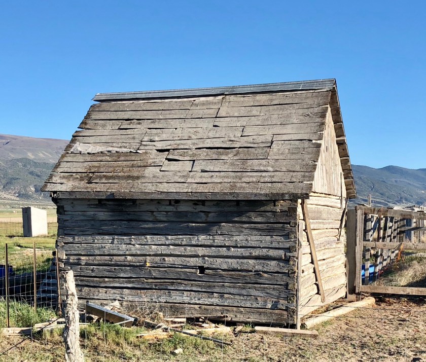 Traveling north through the Rocky Mountains, I started to see these old cabins in Southern Utah, where the Ponderosa pine grew tall and straight. These relicts of our pioneer past are sprinkled throughout the West and remarkably, they are often still occupied. In the dry desert climate of Southern Utah, they are often in remarkably good shape even without a proper roof. They are typically one room usually smaller than a two car garage. They are often accompanied by log barns. The oldest cabins probably date to around 1850 while the later ones seen further up North could be around 1900. Like so much of our past, these Pioneers relics will probably slowly disappear, today they are living reminders of the toughness of those first settlers .