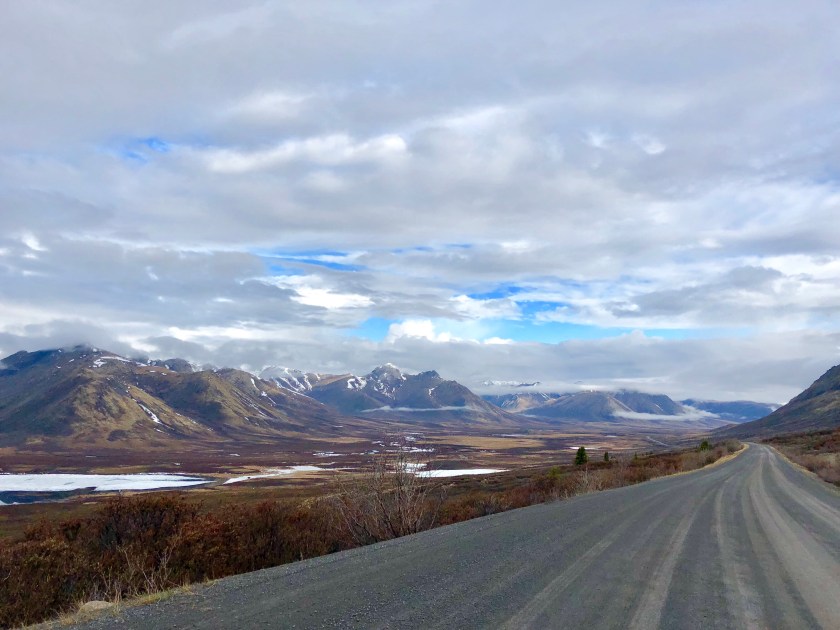 I had camped the night before the drive just below the final mountain pass into the Arctic. This subalpine zone is referred to as the Tiaga, the ecosystem where the trees start to thin out and give way to Arctic Tundra. The Inuit ladies in Dawson had warned me snow was predicted in those final mountains. I waited till the next morning to head out. This range is the last of the Rocky Mountains I started following north in Southern Arizona three months ago. I had reached the Northern most tip of this 5000 mile long string of peaks.