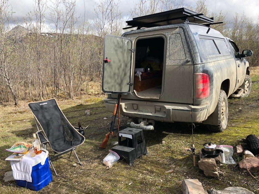 The Blackstone River was full of fish. On my third cast I caught a nice Arctic Grayling. I subsequently caught several more, These Graylings are renowned for their good eating, unfortunately I didn’t dare clean and cook fish at my campsite, that would surely attract bears. I’d been warned by a Game Warden that a Grizzly can get in a locked truck , so to be on the safe side, all fish were released back into the river. So much for a nice fish dinner.