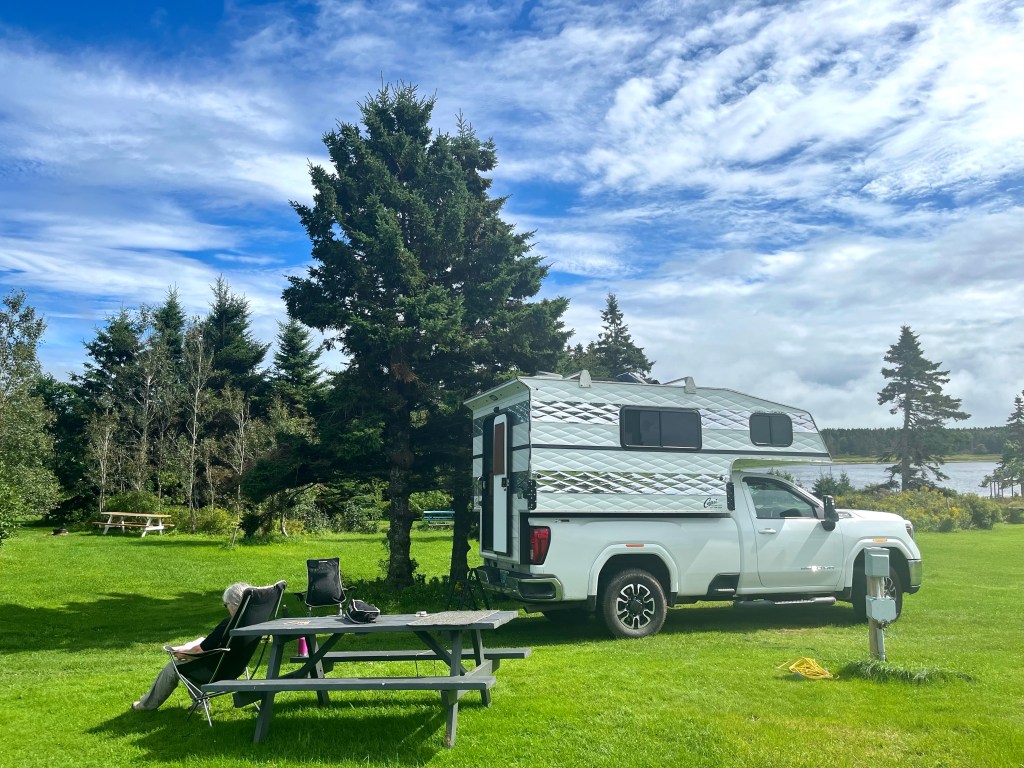 We are camping at the Eastern tip of the island, a point of farmland jutting out into the open ocean. The campground is almost empty, our ocean front site is secluded yet near bathrooms and laundry facilities which’s nice . We arrived under blue skies but a storm blew in off the open ocean and it began to rain sideways, the winds are howling.