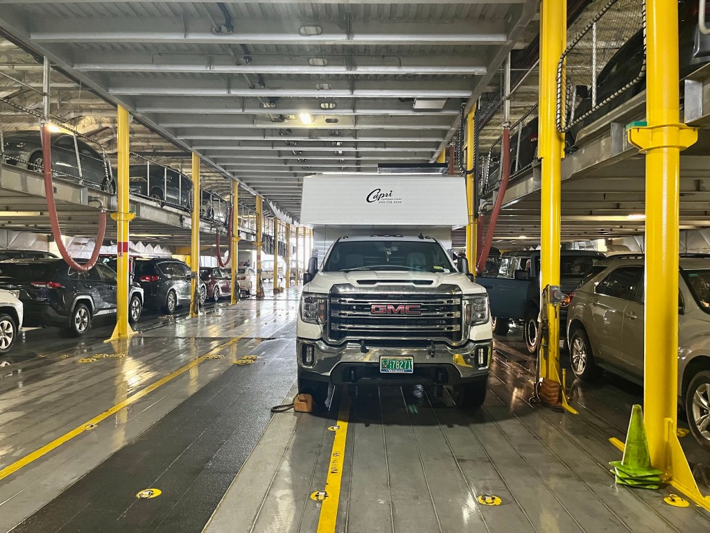 The vehicle deck had 2 levels for cars with taller vehicles in the center