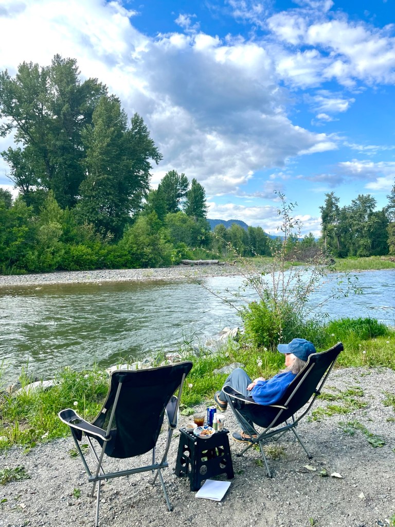 We camped the first night in British Columbia by a salmon river and were told not to swim in it as it would disturb the migrating Chinook salmon. We drove through a beautiful mountain range further north and emerged in foothills where fire fighters were battling a forest fire. Multiple helicopters were dumping water on the flames trying to bring it under control, quite a sight. Dawson Creek, our evening stop, is very smoky from another distance fire. They are short firefighters as there are numerous fires out of control. Western Canada is burning 🔥