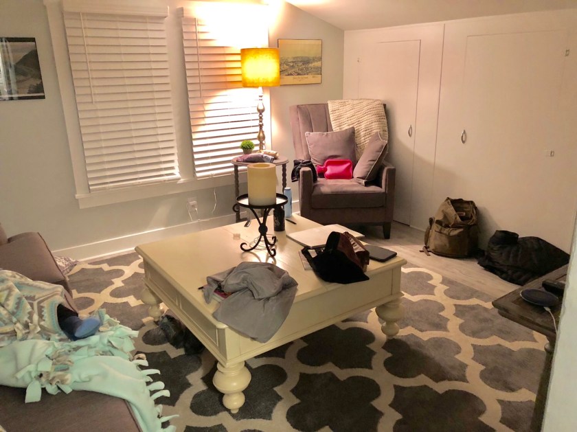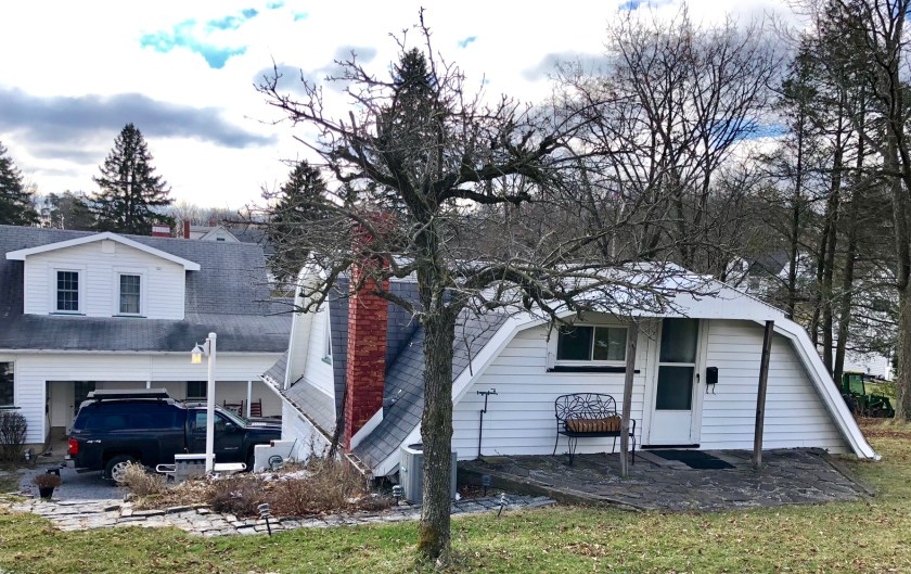 We’ve stopped two nights on our way to West Virginia to visit my cousins. Our first two Airbnb’s were a showcase of contrasts one can expect with this type of nightly shelter. Our first night ( top photo) was in a basement apartment in a two family house, the upstairs was rented to a full time tenant. We entered through a somewhat dingy basement hallway to a fairly pleasant but spartan 2 bedroom apartment. Although I found the place initially acceptable, Karen commented that it could use a ” deep cleaning “. We took advantage of the washer/dryer knowing it could be a few days before we had another opportunity to do any wash. The dining room table was elegantly set with attractive dish ware etc but there wasn’t a cooking pot or spoon/fork in the place, odd. The dealbreaker was the lingering smell of raw sewage . It was too late to bailout so week just went to bed early. We awoke to a full blown blizzard the next morning. We packed up and left as fast as we could.