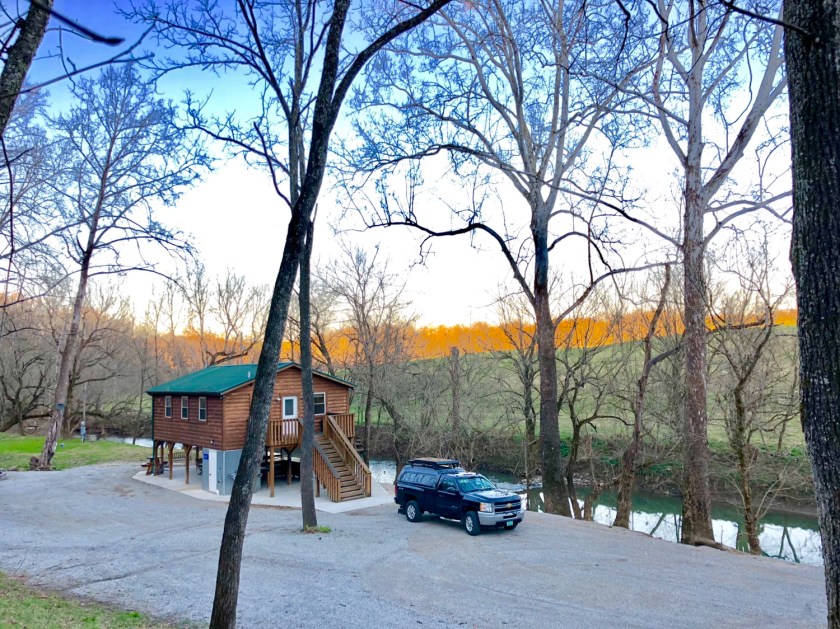When we descended out of the mountains of West Virginia into the rolling hills of Kentucky, it was spring, the flowers were starting to bloom. Our Airbnb is located on a farm about 50 miles outside of Louisville. Our beautiful secluded cottage is right on a small river gushing with spring runoff, the sound of the rushing water is wonderful. Built up off the ground, the cabin has a bar and picnic area underneath, making a great riverside hideaway. Our landlords new home sits above us, atop a hill hidden by trees. We never meet our hosts.
