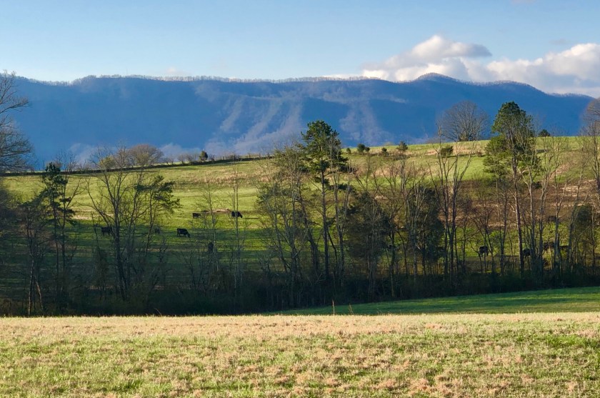 beautiful in law apartment complete with a commercial kitchen ( she does catering). We arrived to fresh blueberry muffins and a fully stocked kitchen with coffee and various foods and all condiments. Nice ! We look out over fields of grazing cattle and distant mountains, a bucolic setting. We’re off to explore Knoxville today.