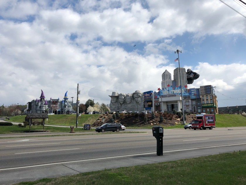 We decided to take a ride to see the Great Smokey Mountains east of us. We drove an hour through the broad valleys with beautiful rolling farmland dotted with neat family cattle farms. As we approached Gatlinburg at the entrance to the Park, we discovered the shocking result of ZERO zoning or urban planning. 12 MILLION people visit the park annually and the powers to be have allowed the most distasteful, tacky urban sprawl to be built right up to the park entrance. The strip of arcades, amusement parks, tattoo parlors , and endless chain restaurants stretches for over 6 miles along a 6 lane highway. The Hillbilly Fued Dinner Theater, the Titanic Hotel ( a 300 foot replica of the ocean liner). Dolly Pardons Vacation Land, they went on and on. Although few people are here now, we envisioned the millions of tourists clogging the highways in the summer. This building free for all has blighted an otherwise beautiful area, The majestic mountains towering over 6 thousand feet are the